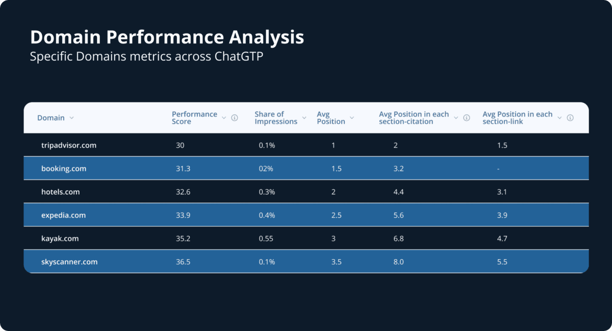 Learn moreAnalyse your visibility alongside competitors, identify gaps, and understand which factors drive strong LLM representation.