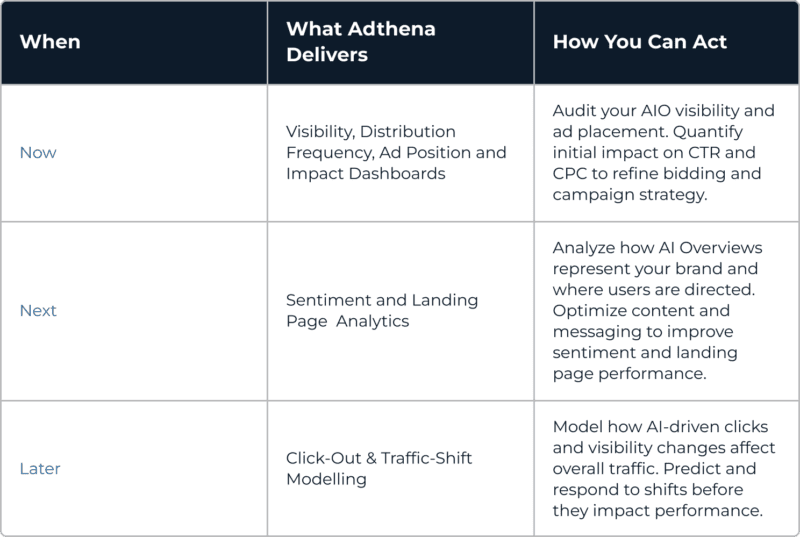 So what does this mean for you? The old paid-search playbook can’t explain sudden CTR drops or traffic volatility. AI elements like Overviews now sit between you and the click: changing not just where your ads appear, but how they perform. Most analytics tools can tell you that an AI element appeared; few can show you what it did to your results. This guide is designed to bridge that gap, helping you understand, measure, and act on the real performance impact of AI Search on your campaigns.